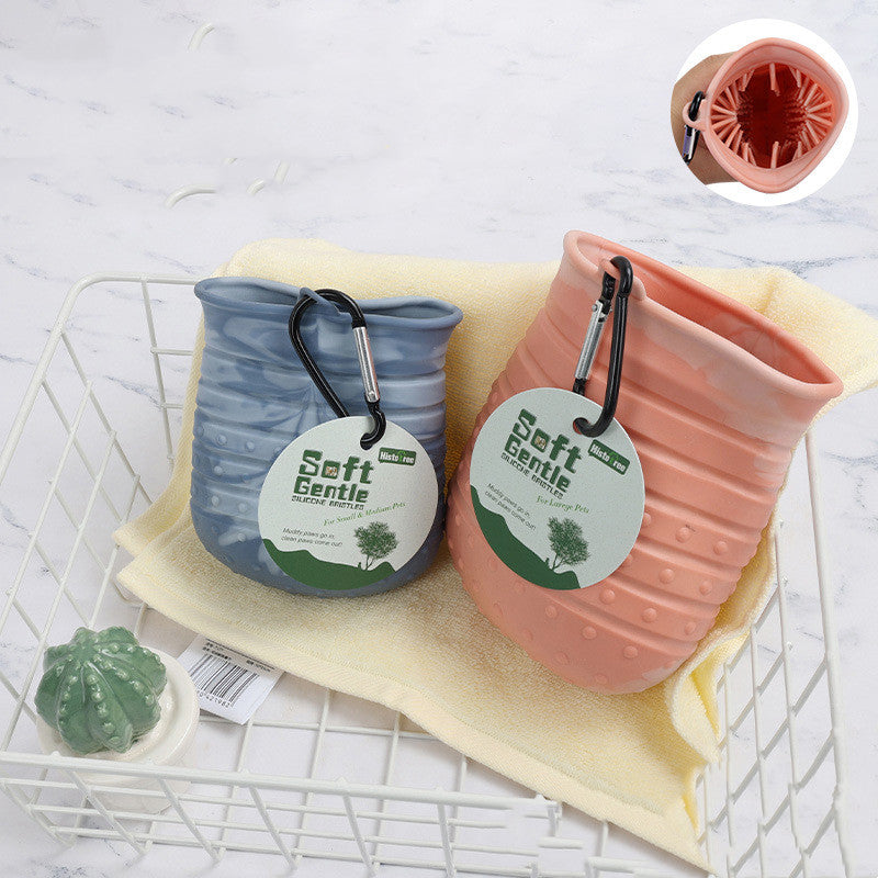 2-in-1 Dog Paw Cleaner & Grooming Brush - Portable Pet Foot Washer